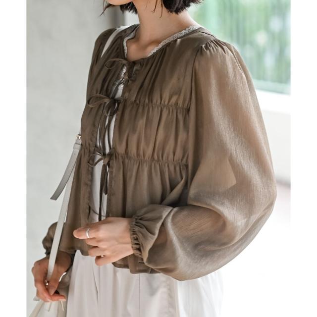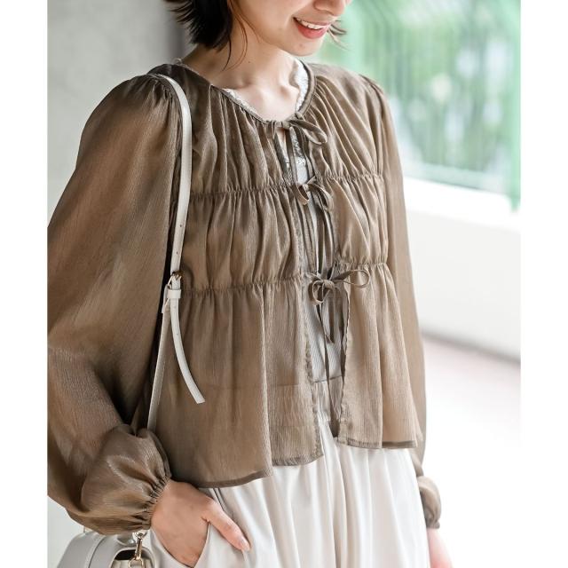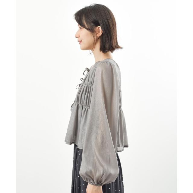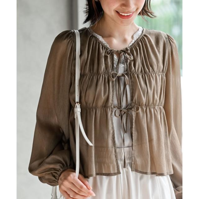 ラメ楊柳シアーリボン2WAYカーデブラウス