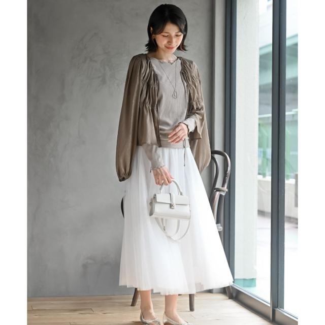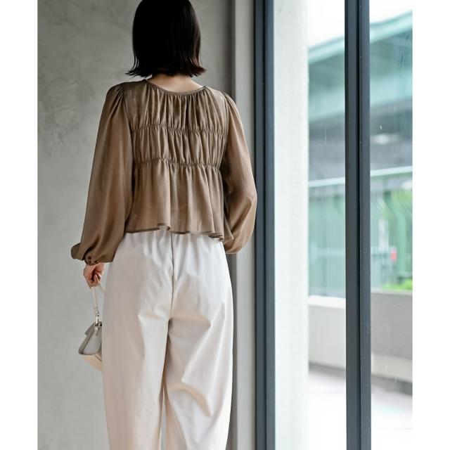 ブラウスとカーディガンの2通りの着こなしができる前後着用可能なトップス。