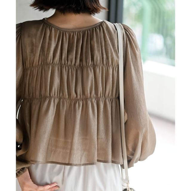 光沢のあるシアー素材が品のある女性らしい装いに仕上げてくれます。