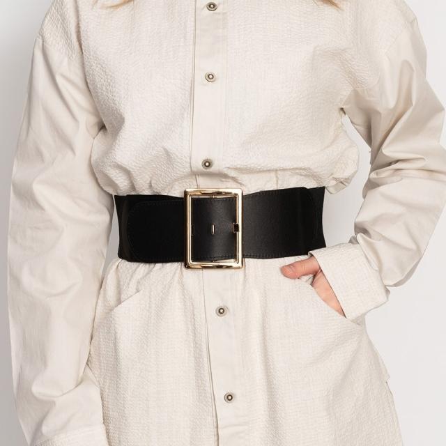 ウエストマークでお洒落に細見えを叶えてくれるワイド幅の万能ベルト。