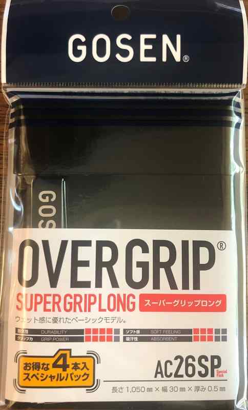 ゴーセン(GOSEN) テニス グリップテープ スーパーグリップロング 4本入り 【日本製】 AC26SP (ブラック)