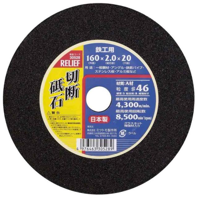 イチネンアクセス リリーフ(RELIEF) 切断砥石 鉄工用 A材 160mm 30528