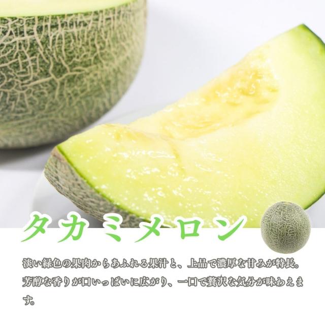 タカミメロン:淡い緑色の果肉からあふれる果汁と、上品で濃厚な甘みが特長。