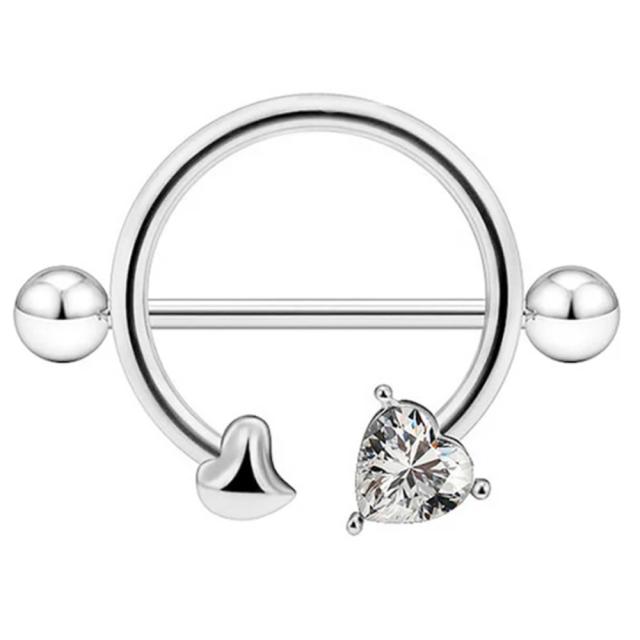 リング型のフレームにハートのキュービックジルコニアとハートをセットしたニップル用ボディーピアス。