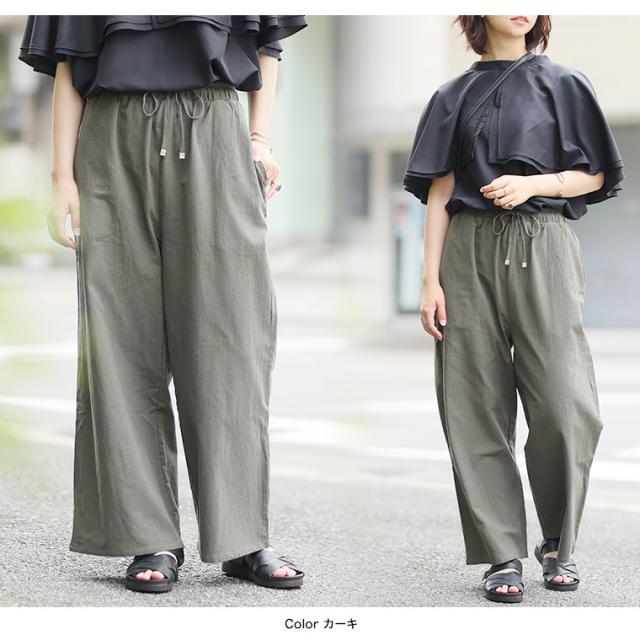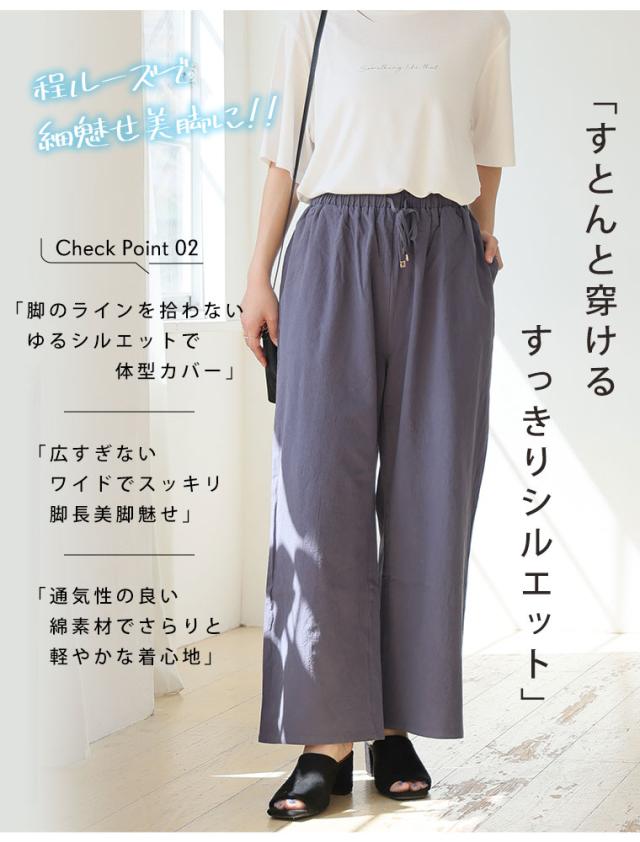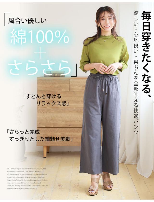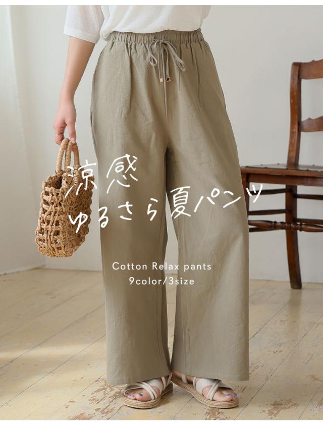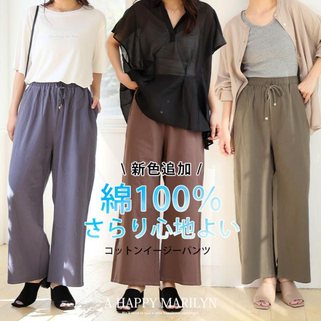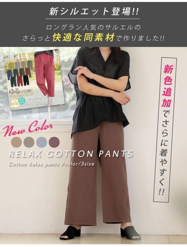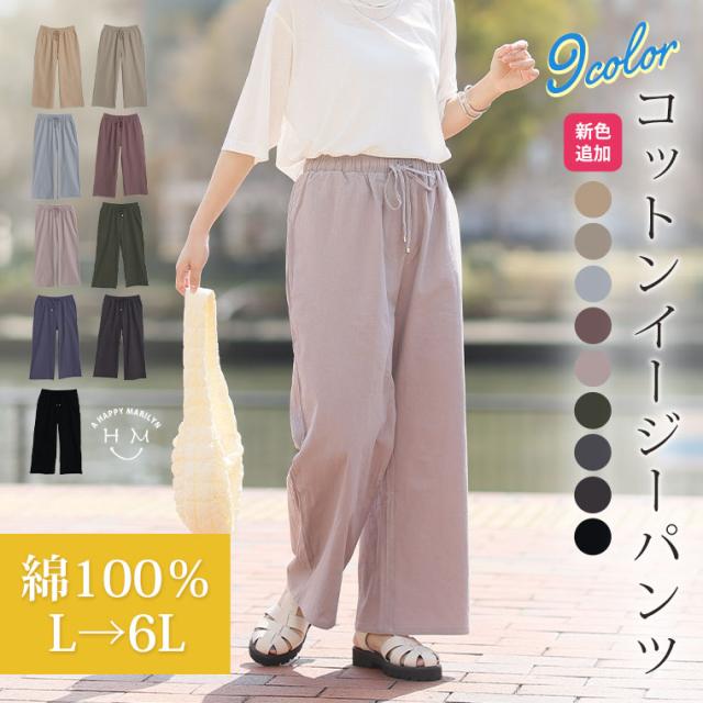 新作 大きいサイズ レディース パンツ | 新色追加!! 綿100% さらっと心地良い コットン イージー ワイドパンツ [433094] LL 3L 4L 5L 6L
