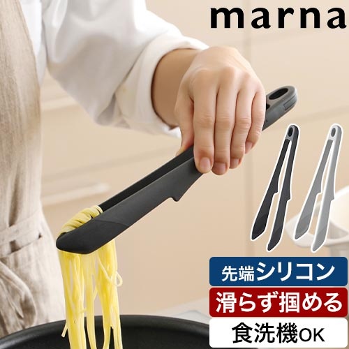マーナ つかみやすいトング きほんのキッチンツール K802 万能トング シリコン おしゃれ かわいい キッチン用品 取り分け 麺 料理 パスタ ナイロン サラダ 洗いやすい 炒め物 傷つかない 軽量 先が細い 先がつかない 食洗機 滑らない 耐熱 marna