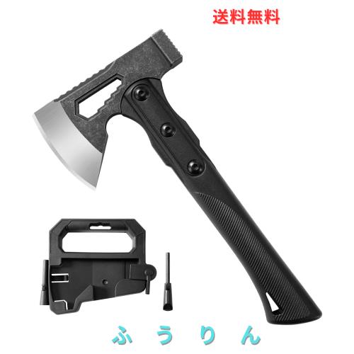 ツールの内容:斧を安全に保護し、便利に収納できる保護用キャリングシースも付いてきます。マグネシウム ファイヤースターター,ホイッスル <笛付き 火打ち石>
