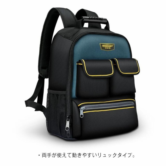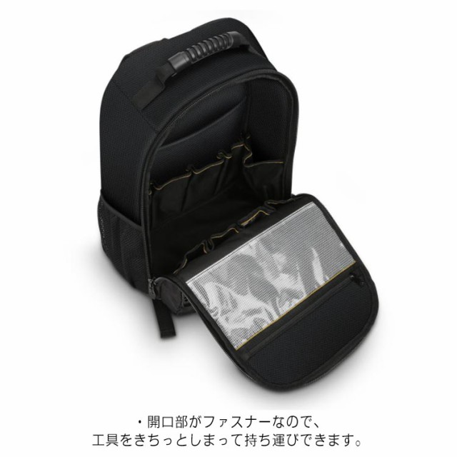 | ・ポケットがたくさん&底部強化で機能性も充実の「ツールバッグ」が登場 ・21個と多くのポケットがあり、工具などの仕分け・収納に非常に便利です。 ・両手が使えて動きやすいリュックタイプ。 ・多数のポケットで工具を綺麗に仕分け。整理整頓もスムーズ。効率的な作業へ。 ・開口部がファスナーなので、工具をきちっとしまって持ち運びできます。 ・ツールポケットは90°まで広げることができます。工具が一目でわかる。アクセスしやすく、時短にもつながる。 ・背面にクッション性を備えた設計。長時間の使用でも快適。肩にも優しい。 ・両手を自由にしながら工具を運搬できるためあらゆる技術者、作業者の方に最適です。 | |