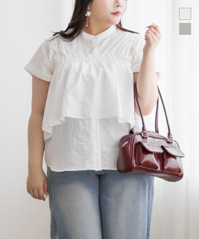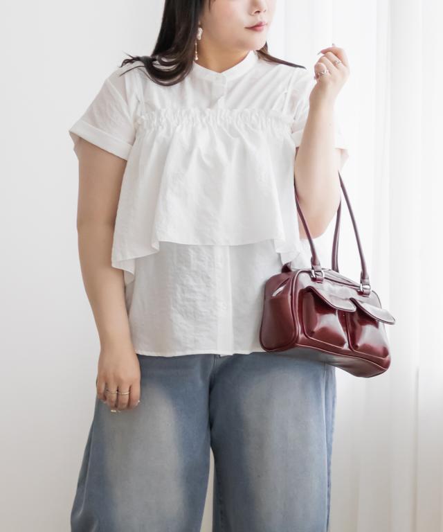 大きいサイズ/レディース/3L/4L/5L/フリルビスチェセットブラウス