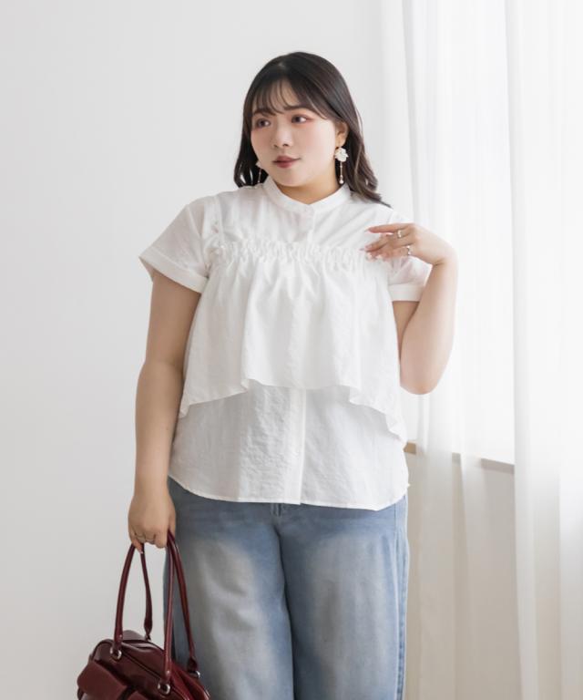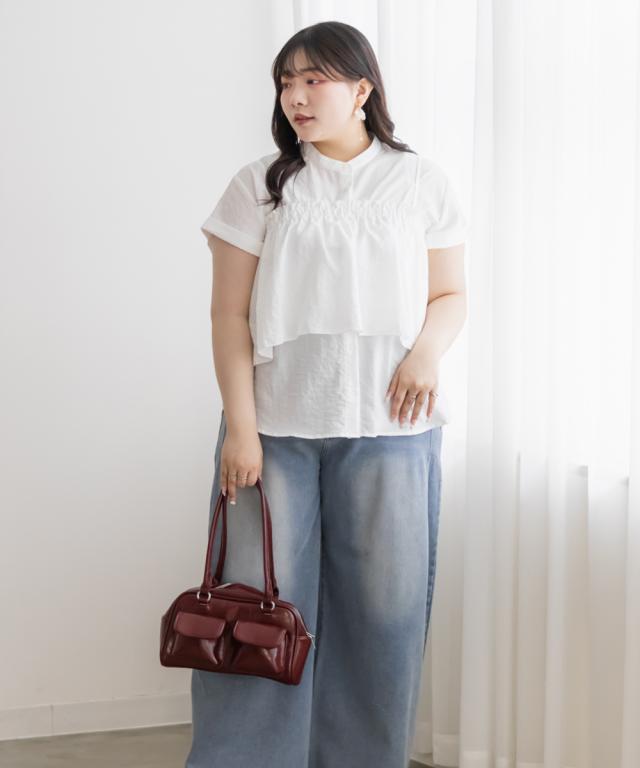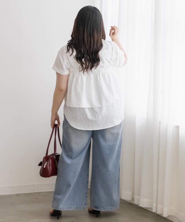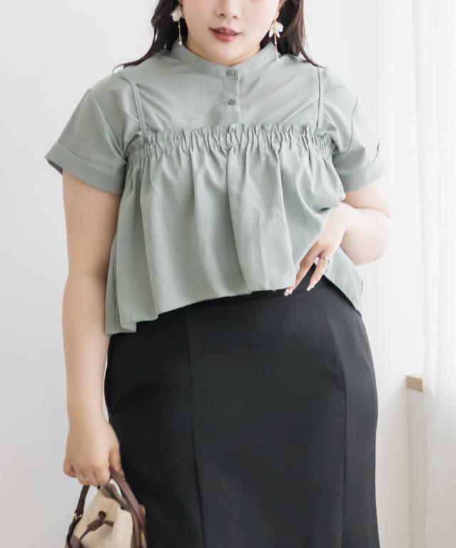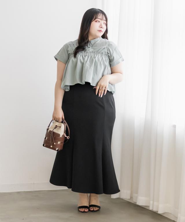 | 3Lサイズを着用しました。ブラウス・ビスチェともにちょうどいいサイズ感で、腕まわりや身頃にも窮屈感はありませんでした◎ 夏にピッタリなさらっとした軽い生地感です!セットで着るとメリハリのあるレイヤードスタイルが完成して、一気におしゃれ感がアップします♪ビスチェがふんわりお腹周りもカバーしてくれて、すっきり着やせして見えます!ブラウス単体でも使えるので、着回し力も抜群です。 |