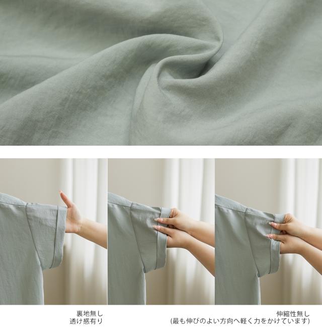 | 裏地無し、透け感少し有り、伸縮性無し |