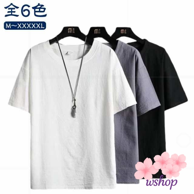 【wshop】tシャツ おしゃれ 夏服 黒 白tシャツ 半袖 部屋着 無地 ラウンドネック 半袖Tシャツ 夏 クルーネック ホワイト ルームウェア 大きいサイズ グレー シンプル ティーシャツ メンズファッション リネン調 ブラック メンズ リネン調