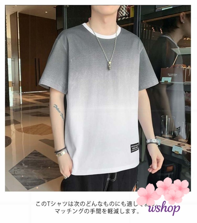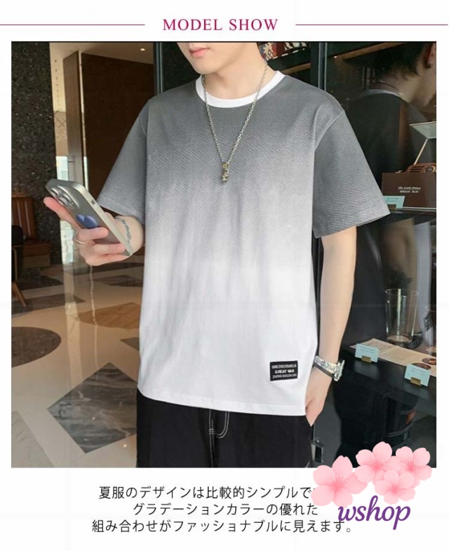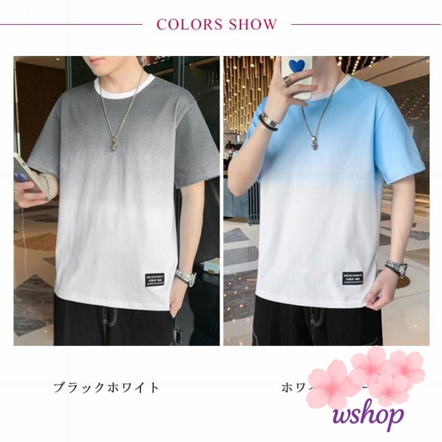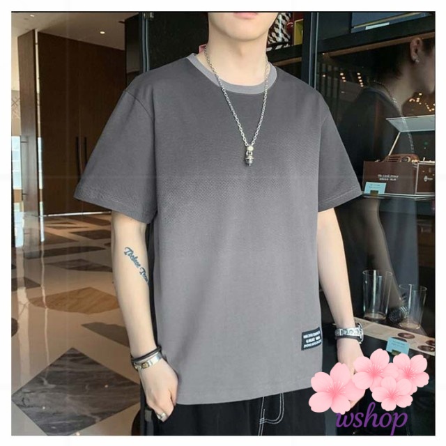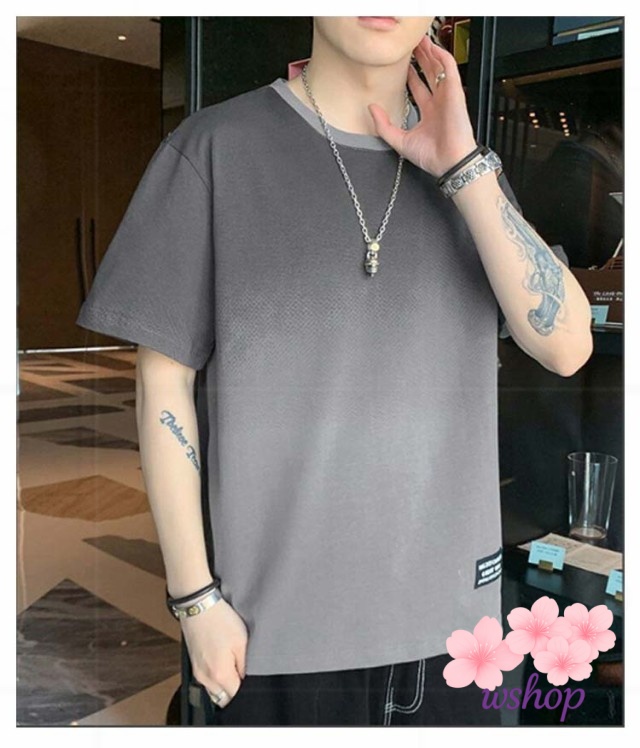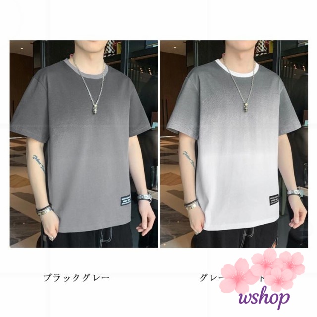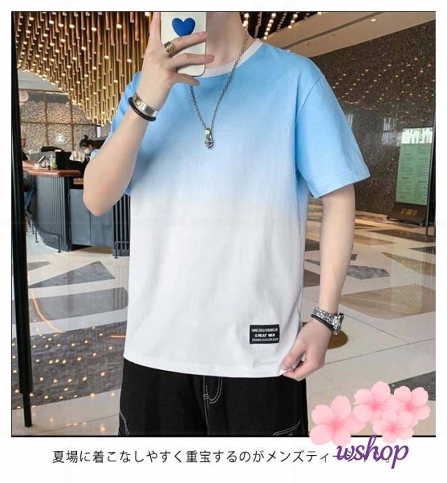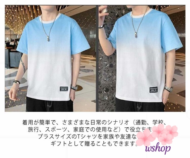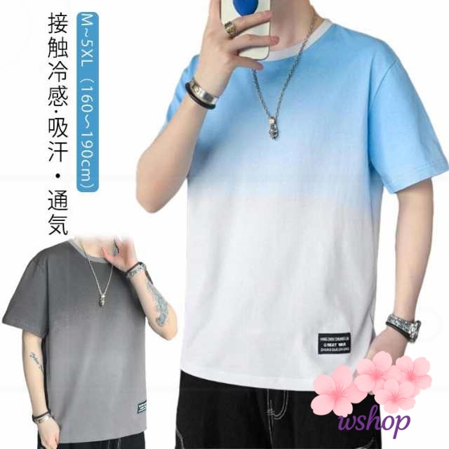 【wshop】丸襟 【M~5XL】 tシャツ クルーネット 猛暑対策 涼しい ファッション 丸首 秋 ビッグt トップス ゆったり カットソー 接触冷感 柔らかい 冷感 Tシャツ 半袖 ひんやり 【M~5XL】 グラデーション カジュアル 快適 夏服 大きいサイズ おしゃれ 夏 軽い 春