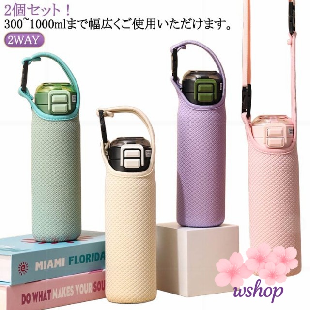 収納便利 SNS話題 ホルダー 無地 子供 おしゃれ 魔法瓶 水筒カバー 350/450/600/800/1000ml用 2個セット ベージュ ペットボトルカバー マイボトル ショルダー グリーン 【wshop】手提げ ドリンクホルダー 保温ボトル用 パープル 大人 持ち運び ピンク 在庫わずか