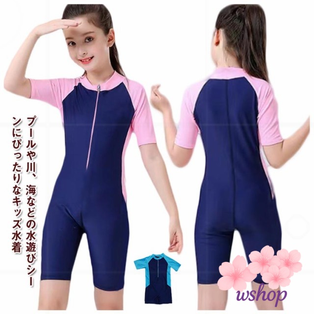 【wshop】水遊び スイムウェア 小学生 ビーチ ショートパンツ スクール水着 スイムウェア プール 半袖 スクール水着 水着 ラッシュガード 男の子 オールインワン 女の子 水泳
