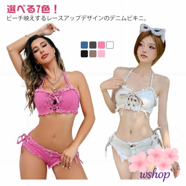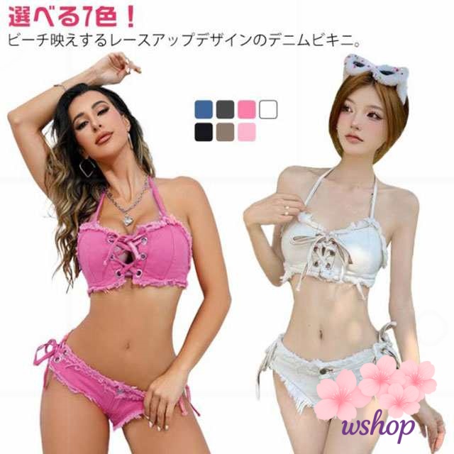 秋の新作特集 多機能デザイン オトナ女子 おしゃれ 【wshop】バスト かわいい SNS話題 ノンワイヤー セパレート レースアップ 体型カバー 20代 盛れる 水着 在庫わずか 収納便利 ビキニ ショートパンツ 40代 30代 ジーンズ 6色 ブラ デニム セクシー 送料無料実施中