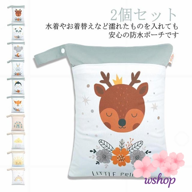 【wshop】2個セット 可愛い 海 保育園 洗える 防水 おむつポーチ ギフト 汚れ物入れ トラベル ビーチバッグ 出産祝い オムツポーチ プール 水着入れ プール 防水ポーチ 軽量 旅行バッグ スイミング プールバッグ 大容量 着替え 防水ポーチ