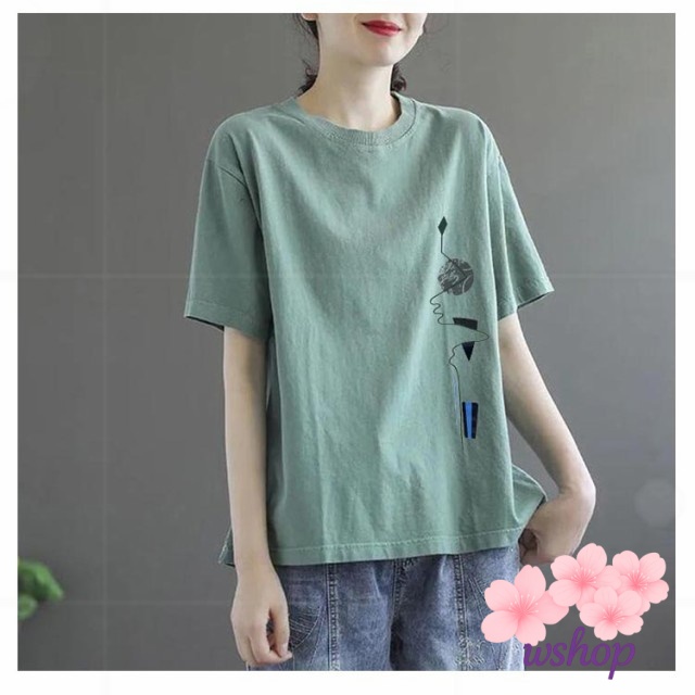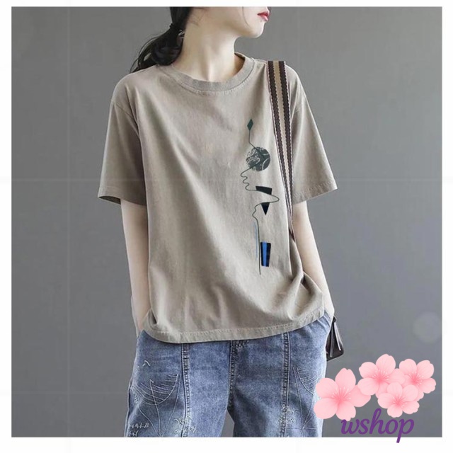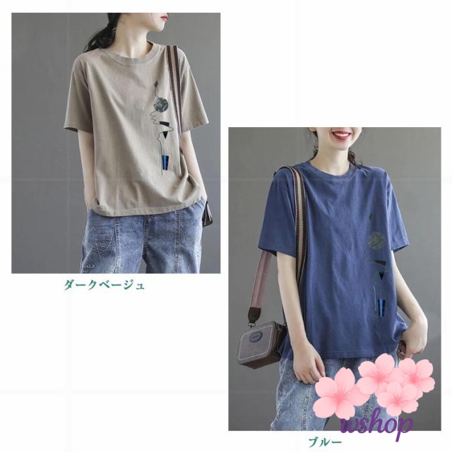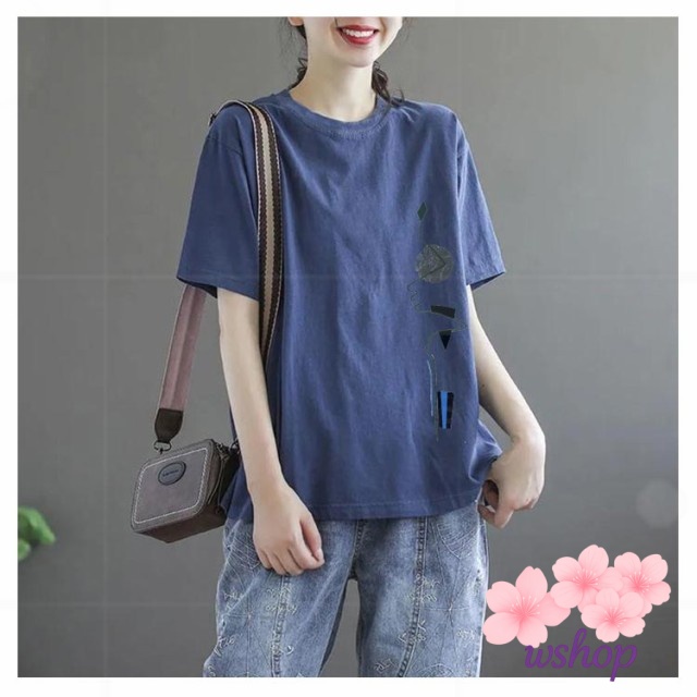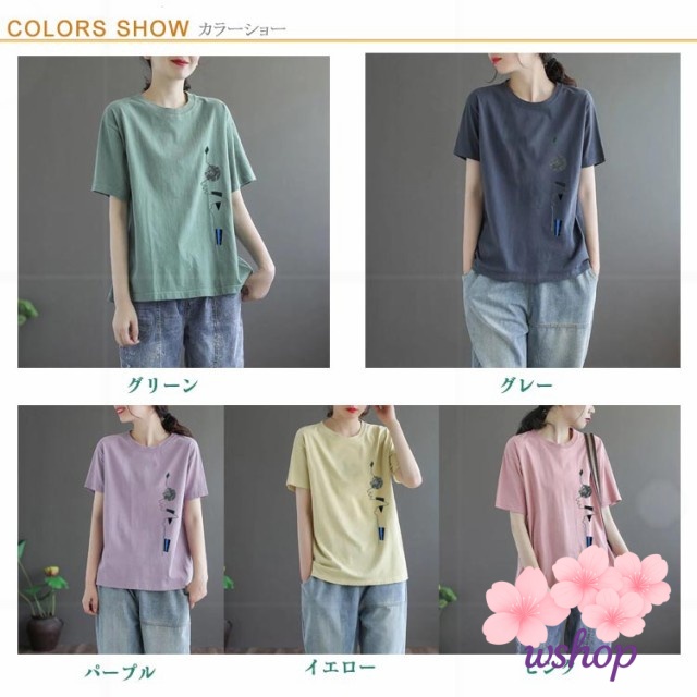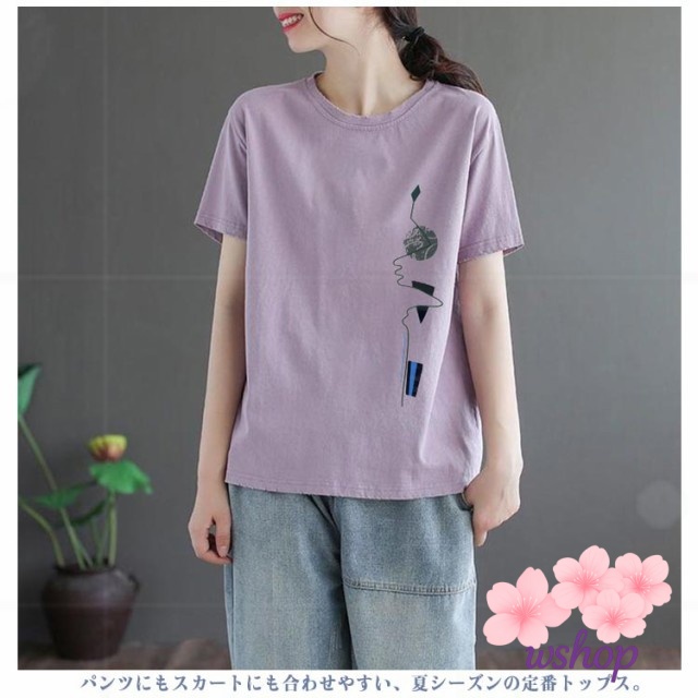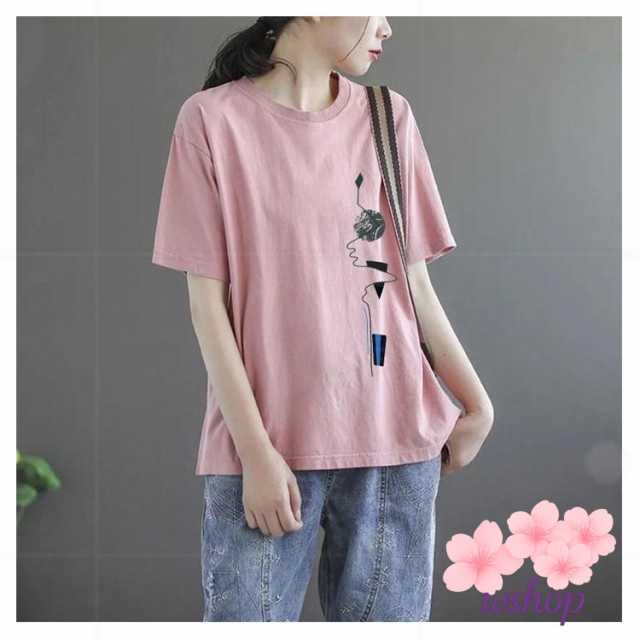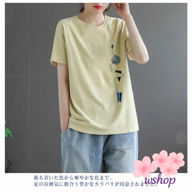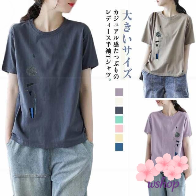 【wshop】半袖Tシャツ サマーTシャツ トップス tシャツ 半袖 大きいサイズ tシャツ レディース ゆったり カットソー tシャツ プリントTシャツ 丸首 シンプル 女性 夏 クルーネック 体型カバー