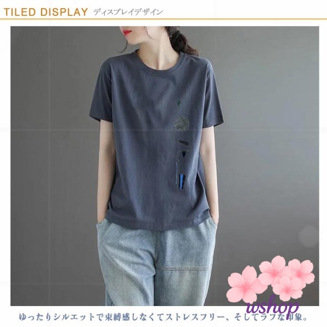 半袖Tシャツ 半袖 シンプル クルーネック ゆったり 女性 tシャツ カットソー tシャツ プリントTシャツ 夏 トップス レディース 丸首 体型カバー tシャツ サマーTシャツ 大きいサイズ