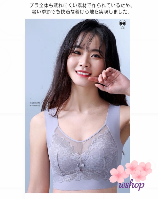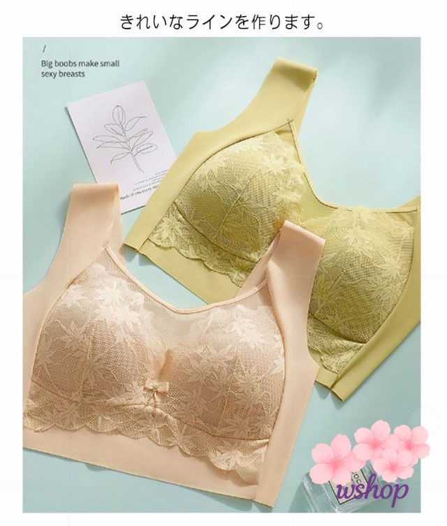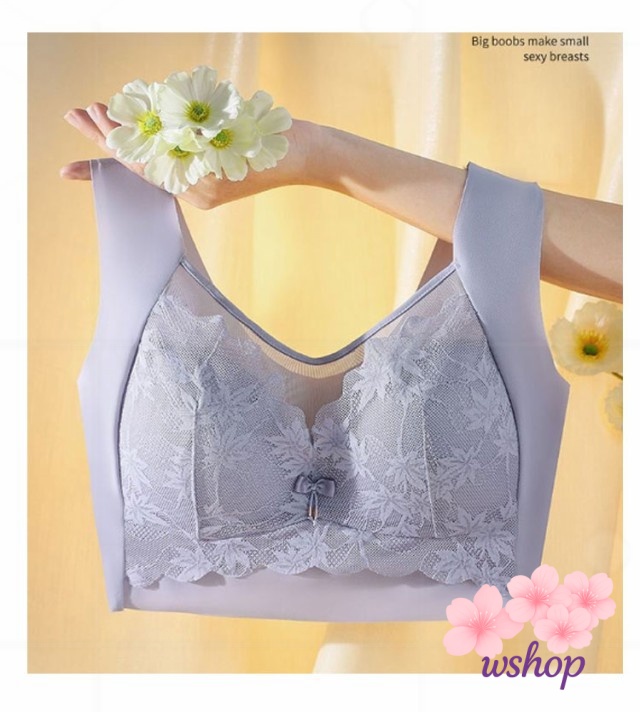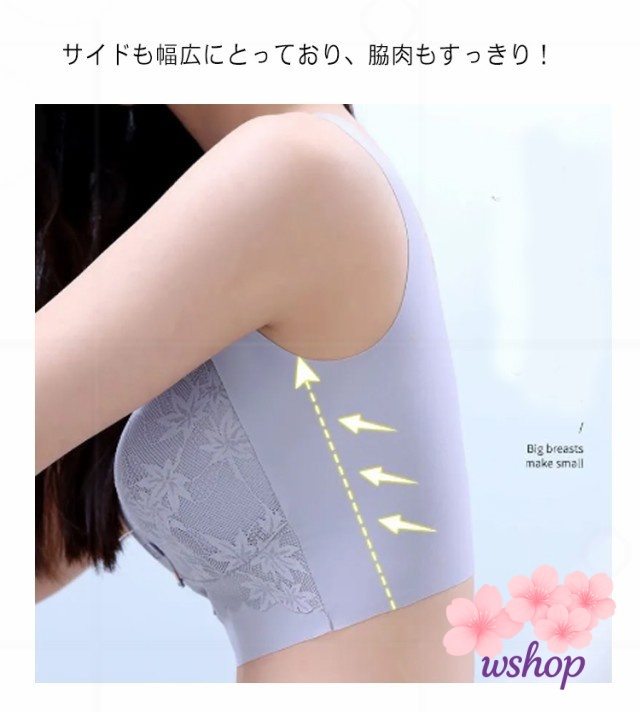 【wshop】ワイヤレスブラ ナイトブラ 胸を小さく見せるブラ 脇高 下着 補正下着 大きいサイズ バストを小さく見せるブラ インナー 送料無料 ノンワイヤー 痩せ見え レース 補正 ブラジャー