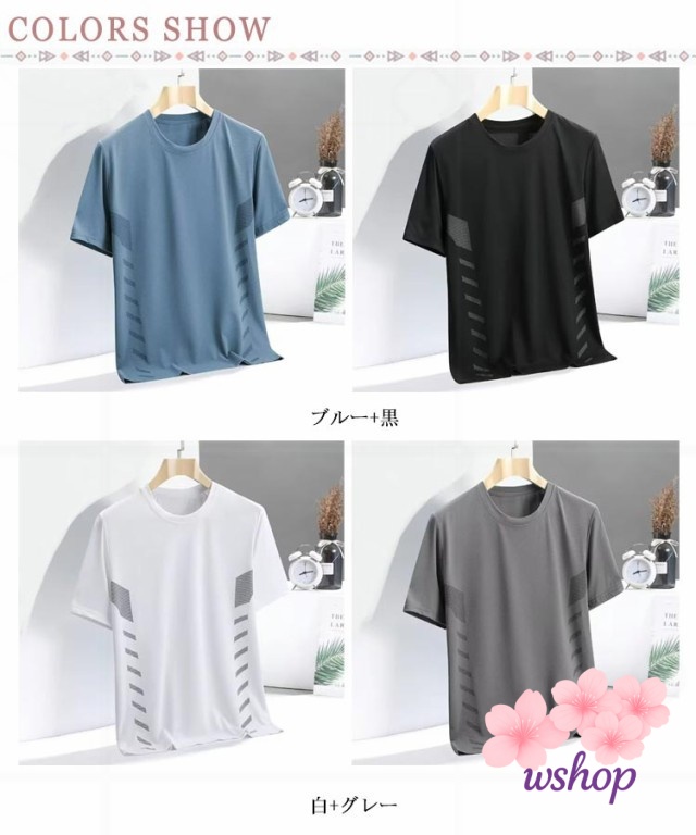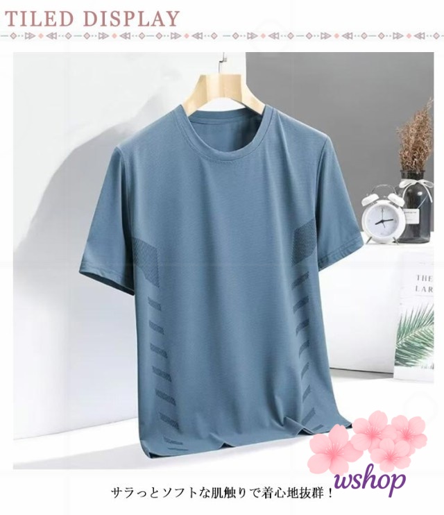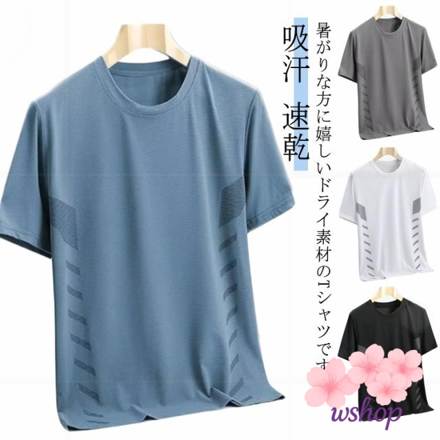 【wshop】Tシャツ ドライ クルーネック 半袖 メンズ 涼しい ドライ サッカー 部屋着 ハンドボール 大きいサイズ 丸首 ルームウェア 吸汗 ランニング アウトドア トレーニング 速乾 バスケ