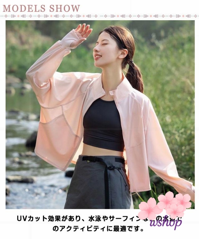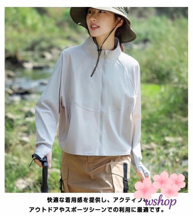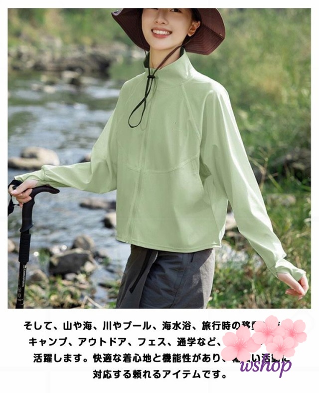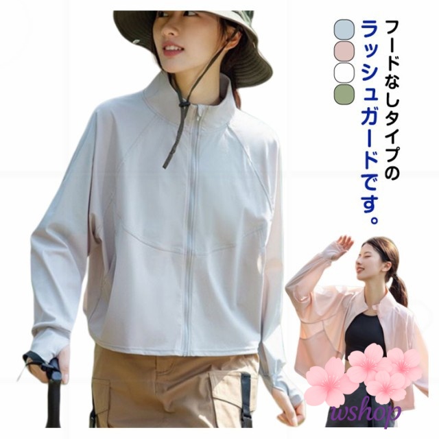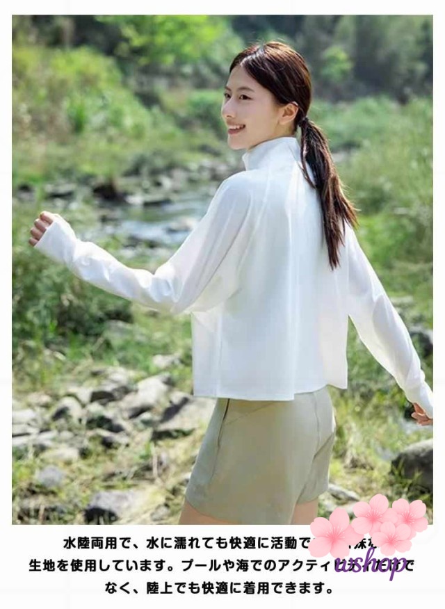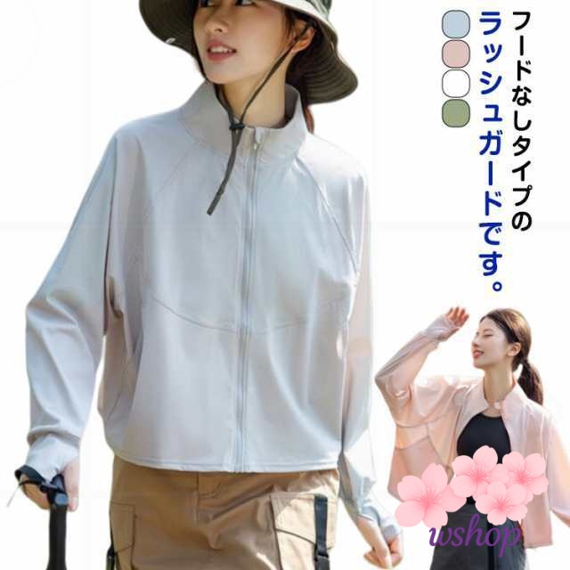 【wshop】涼しい UPF50+ 水着 UVカット 紫外線対策 おしゃれラッシュガード レディース UVウェア パーカー 冷感 羽織りもの 立ち襟 薄手 接触冷感 大きいサイズ 涼しいラッシュガード 長袖 UVカット 体型カバー ひんやり