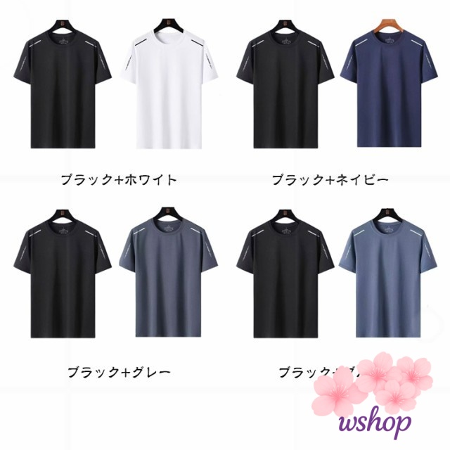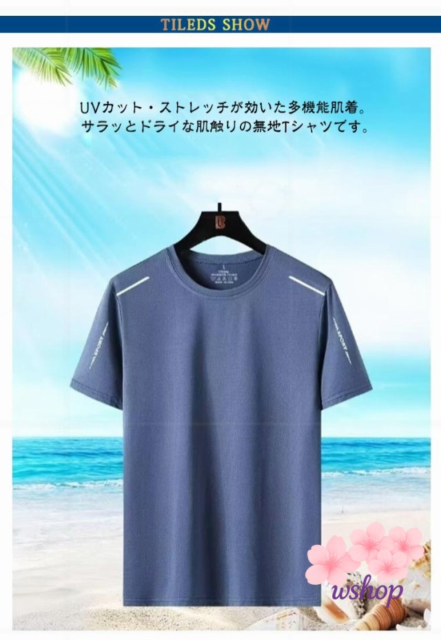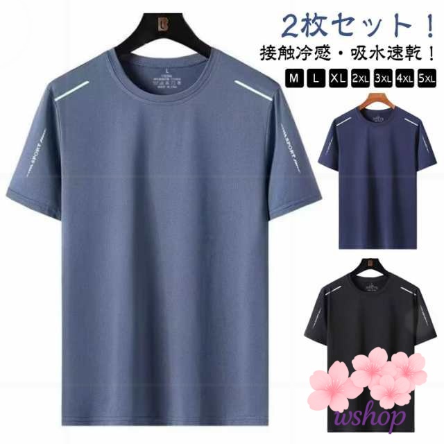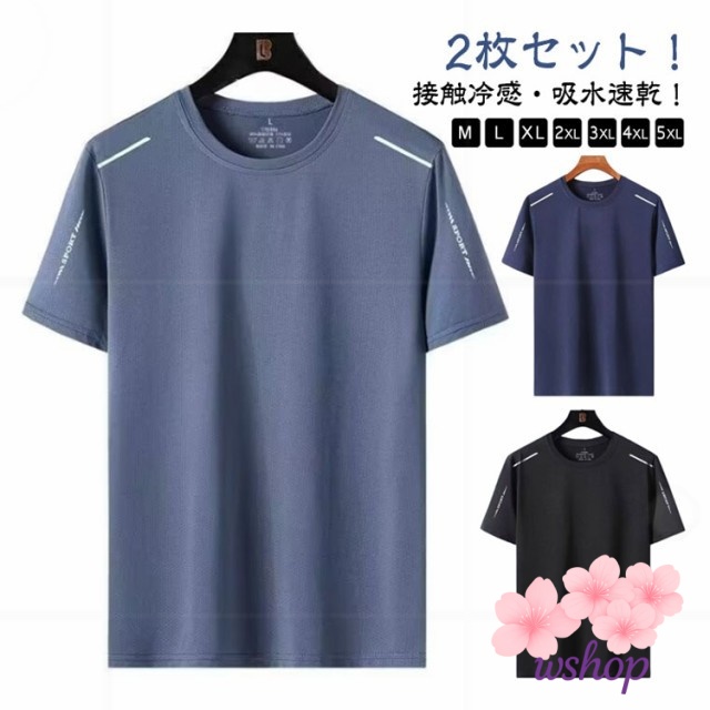 【wshop】2枚セット!涼しい メッシュ 作業着 UVカット スポーツ ストレッチ メンズ ラッシュガード ゴルフインナー 接触冷感 クルーネック 夏用 涼感素材 レディース 男女兼用 アウトドア 半袖 2枚セット!涼しい 吸汗速乾 トップス Tシャツ 大きいサイズ 作業服 通気性