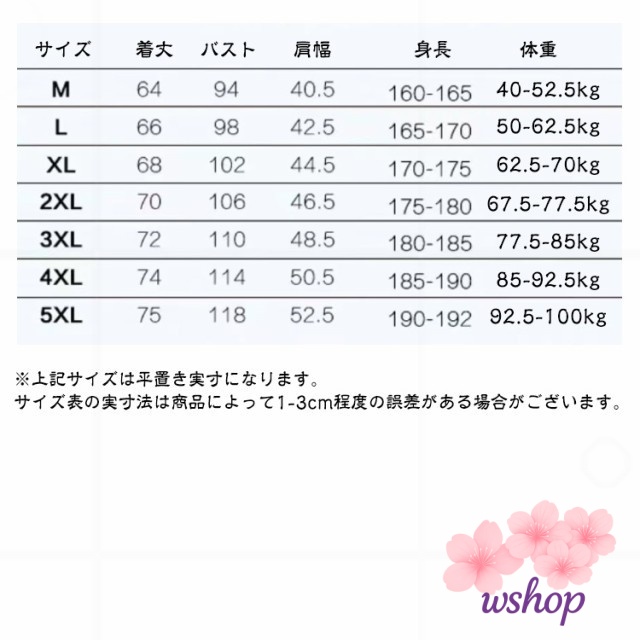 | サイズ | M L XL 2XL 3XL 4XL 5XL |