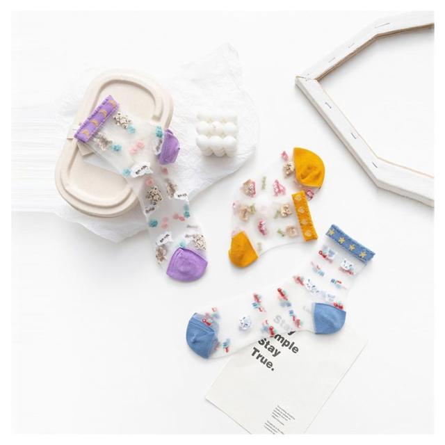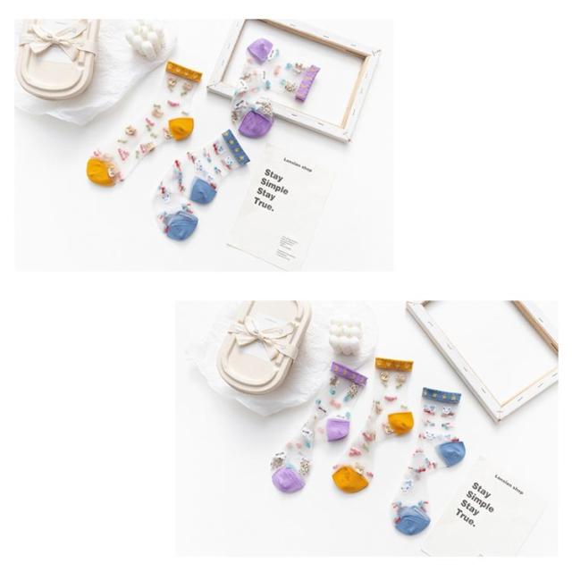 5足セット 靴下 ソックス レースソックス チュール 花柄 動物柄 チュールフラワーソックス くつ下 レディース シースルー靴下 総柄 シースルー 透け感 伸縮性 可愛い パンプス