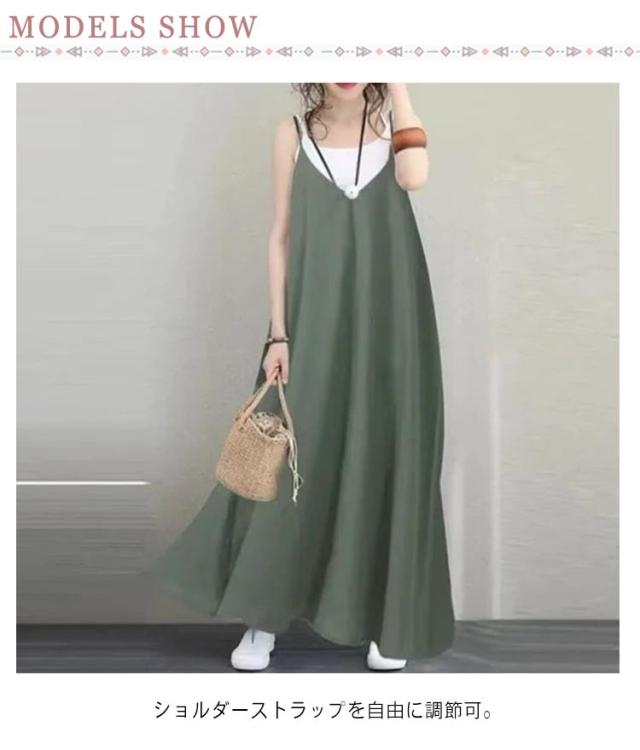キャミ ワンピース キャミソールワンピース ワンピース 重ね着 高身長 着回し キャミソール ロングワンピース ロング丈 ノースリーブ レディース レイヤード ロング ショルダーストラップ調節可能 きれいめ Aライン 大きいサイズ 無地 低身長 シンプル 夏 送料無料