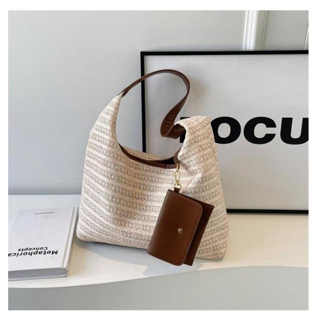 | シーズン定番のかごバッグ。しなやかで軽いストロー風素材でコーデに爽やかな季節感をプラス ナチュラルな風合い色で一気に夏の雰囲気へ仕上げてくれます♪ 大容量でありながら軽量なので、日常使いはもちろん、海辺の散策や旅行にも最適です。 手持ち部分は補強されているため、安心してお使いいただけます。 肩にかけやすいシンプルなデザインで、長時間の使用でも快適です。 この「かごバッグ」一つプラスするだけで、夏のお出かけがより快適で涼しげな印象にチェンジしてくれます | |