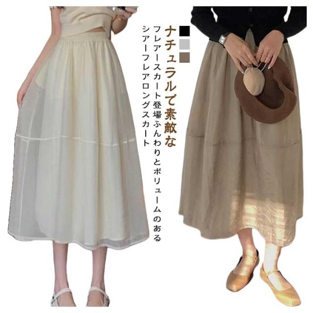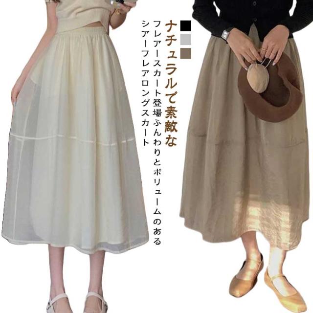 ロングスカート スカート レデイース フレアスカート ボトムス マキシスカート ミモレ丈 マキシ スカート 春 夏 リゾート 体型カバー aラインスカート フレア ハイウエスト ふんわり 裏地あり スカート おしゃれ オシャレ大人 シンプル 着痩せ 通勤 送料無料