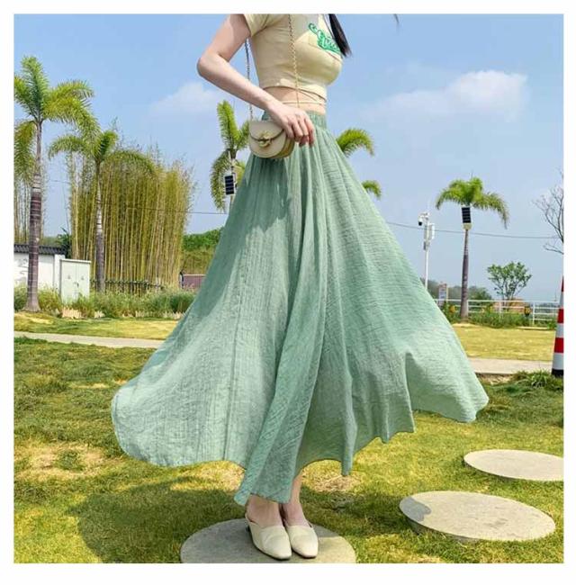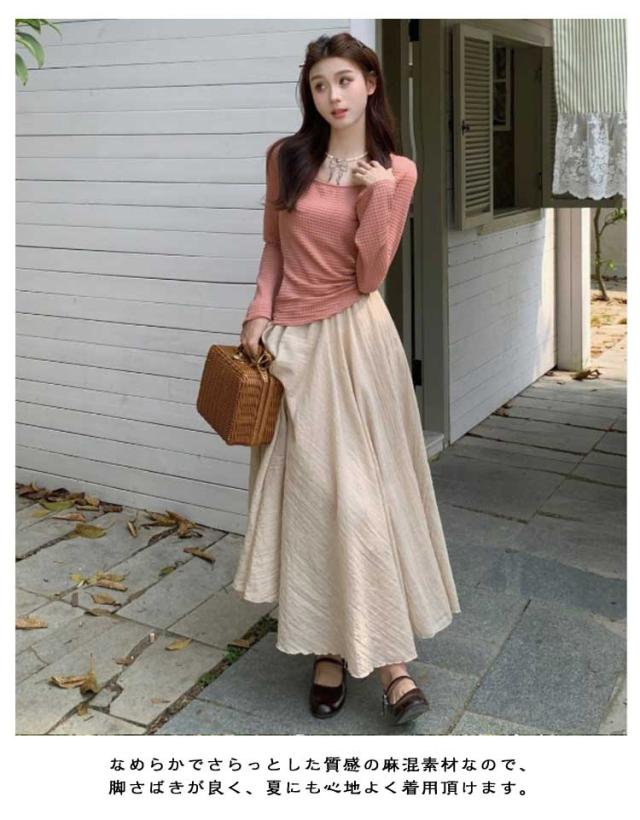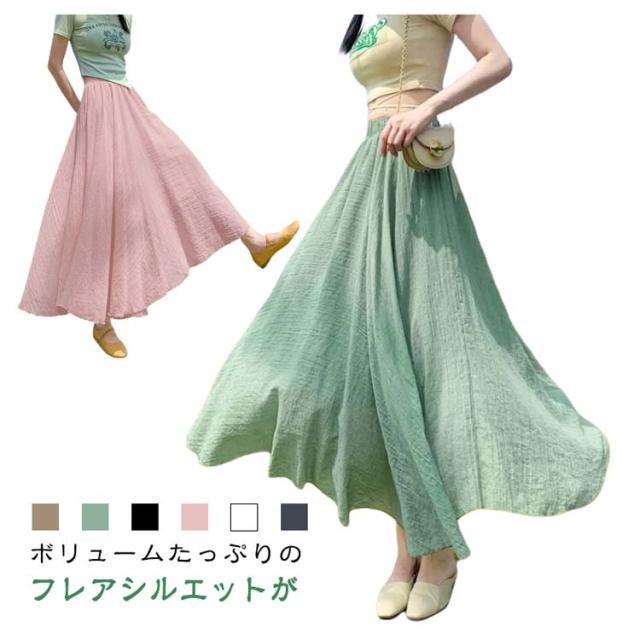 フレアスカート ロングスカート レデイース スカート 夏 フレア リネンスカート 綿麻 マキシスカート マキシ スカート リゾート 体型カバー aラインスカート 亜麻 フレア ふんわり リネン風 フレア リネン風スカート 送料無料