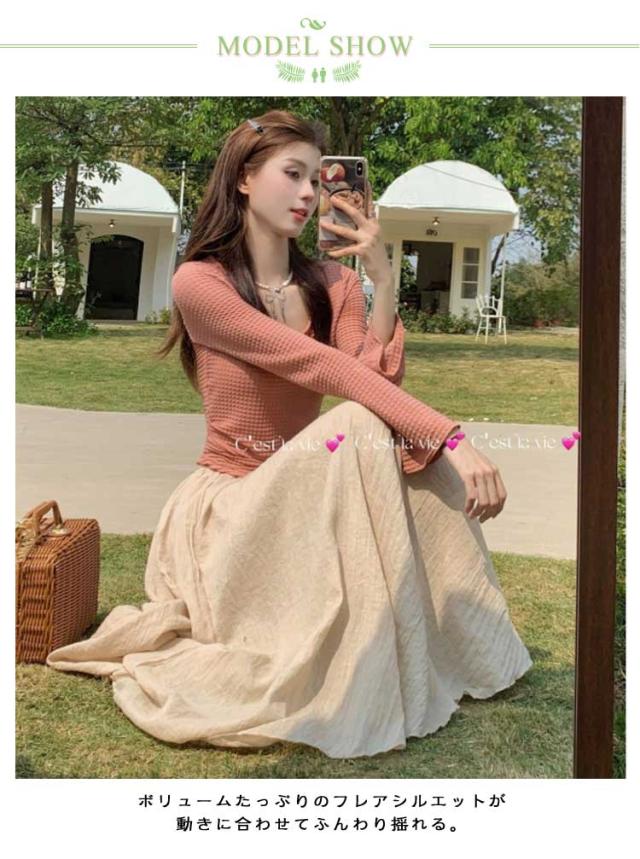 | ボリュームたっぷりのフレアシルエットが 動きに合わせてふんわり揺れる。 ウエストゴムで、楽ちんな着心地。 柔らかいく肌触りの良い素材で着心地抜群。 春夏のスタイリングを盛り上げる必須アイテムです! なめらかでさらっとした質感の麻混素材なので、脚さばきが良く、夏にも心地よく着用頂けます。 薄手の柔らかなコットンガーゼ素材でフワフワ女子力アップ。 | |
