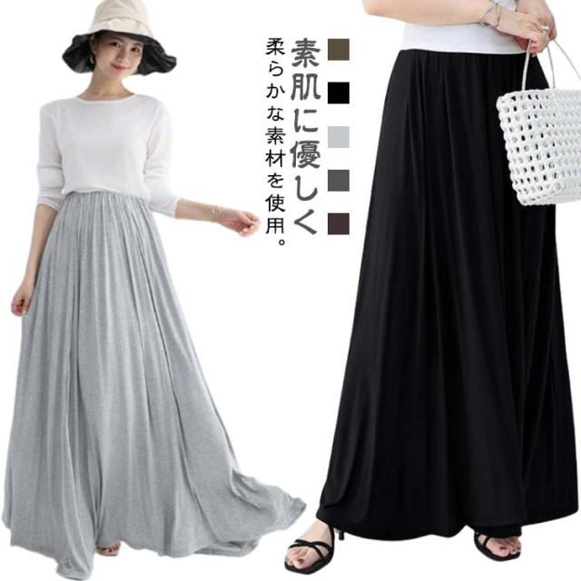 スカート ロングスカート マキシスカート レデイース プリーツスカート フレアスカート ロング丈 マキシスカート 春夏 プリーツ 黒 ブラック ボトムス ロング スカート 春 夏 春夏 モーダル ストレッチ 送料無料