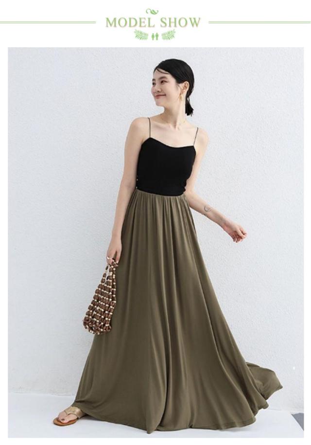 | 素肌に優しく柔らかな素材を使用。 リラックスできる着心地で、 ずっと着ていたくなるアイテム♪ トレンドに左右されないシンプルな無地フレアスカートだから どんなコーデにも合わせやすい!! ドレープがきれいにでるので 体型カバーもバッチリ!! ストレッチウエストで動きやすく、ゆらりと揺れるナチュラルシルエット。ラフな可愛さたっぷりで、毎日着回したくなる着心地です♪ | |