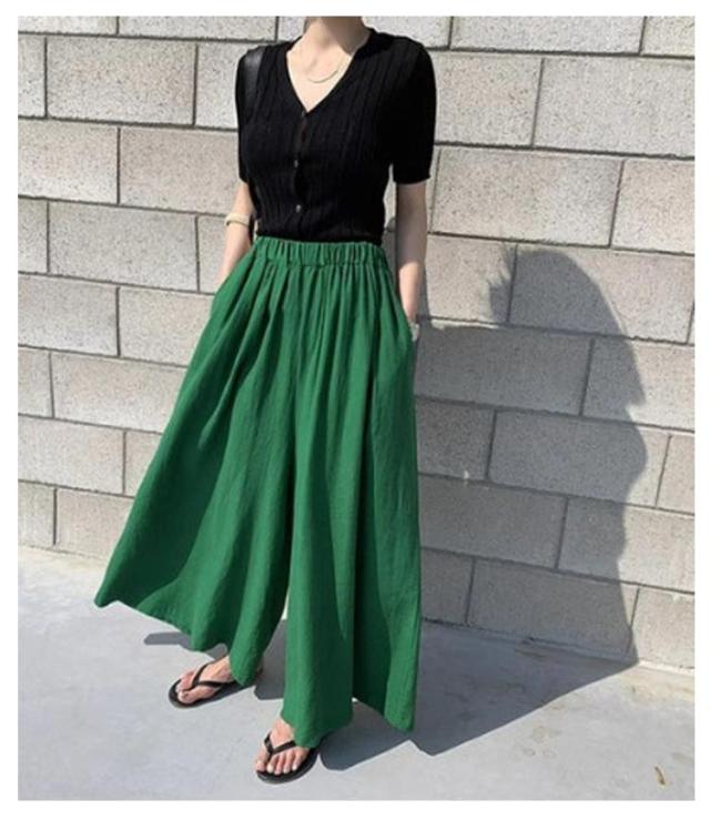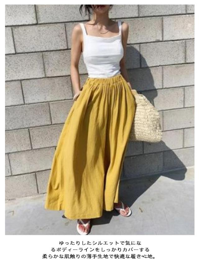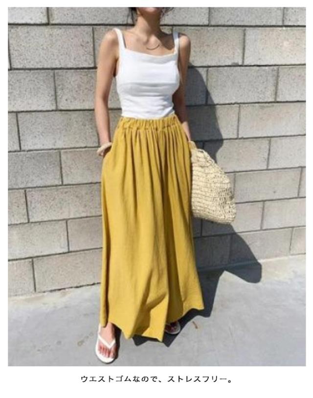 | 全4色×7サイズ!スカートのスタイルに履けるワイドパンツ。 ウエストゴムなので、ストレスフリー。 ゆったりしたシルエットで気になるボディーラインをしっかりカバーする♪ 柔らかな肌触りの薄手生地で快適な履き心地。 シンプル無地だからトップスも選ばず、幅広いコーデに使える1本。 | |