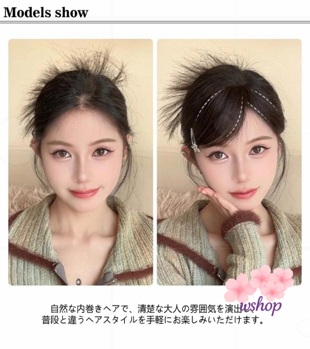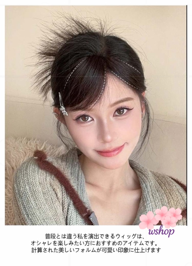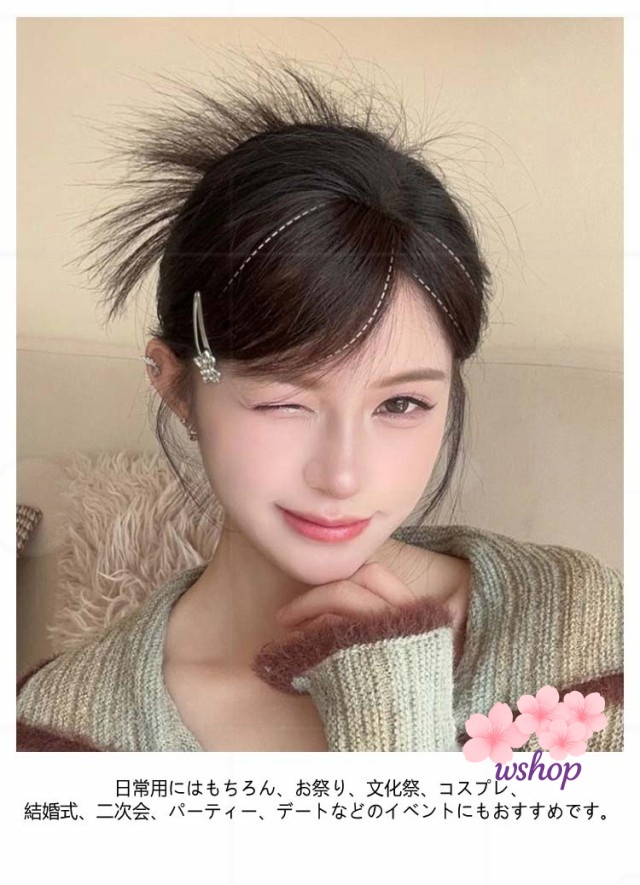 | 【前髪ウィッグ】【小顔効果】【3タイプ】 自然な内巻きヘアで、清楚な大人の雰囲気を演出し、普段と違うヘアスタイルを手軽にお楽しみいただけます。 普段とは違う私を演出できるウィッグは、オシャレを楽しみたい方におすすめのアイテムです。 計算された美しいフォルムが可愛い印象に仕上げます♪ 日常用にはもちろん、お祭り、文化祭、コスプレ、結婚式、二次会、パーティー、デートなどのイベントにもおすすめです。 日常シーンでも使いやすく、付け方は簡単!自分の前髪をヘアピンで固定し、クリップで留めるだけ。 | |