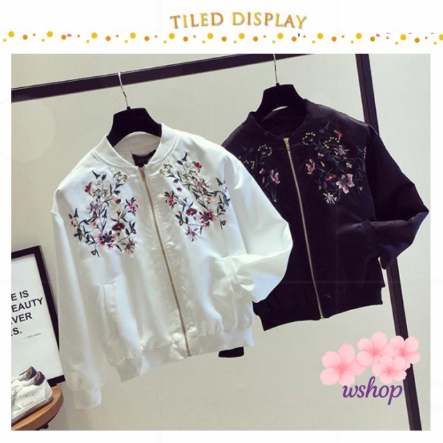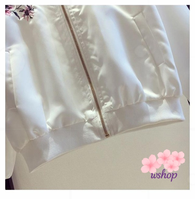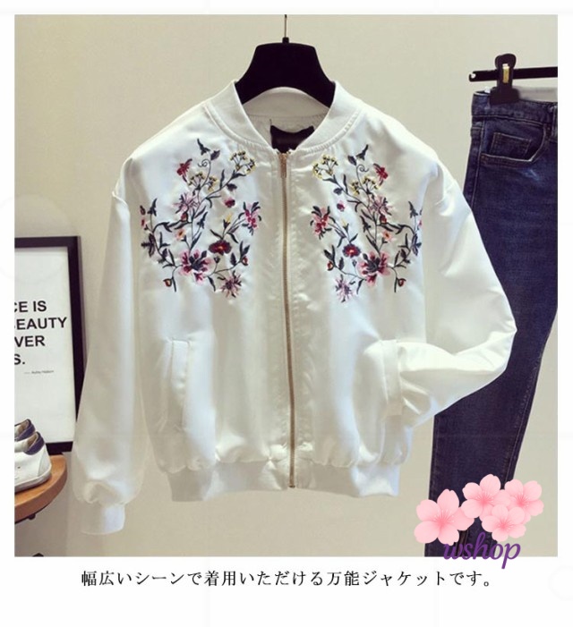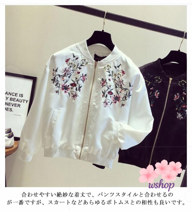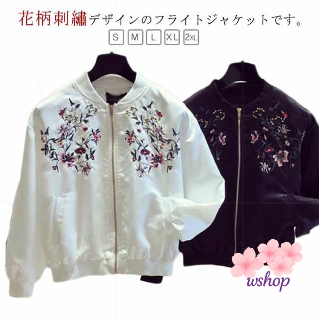 【wshop】レディース S M ショート おしゃれ フライトジャケット 2XL L 秋 春 ノーカラー スカジャン 刺? 春服 フライトジャケット ホワイト XL ジャケット ブラック 韓国ファッション ライトアウター 長袖