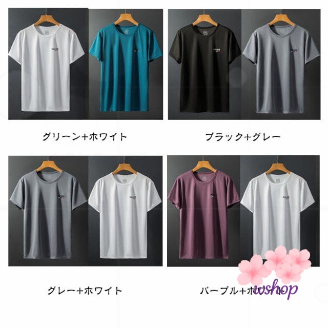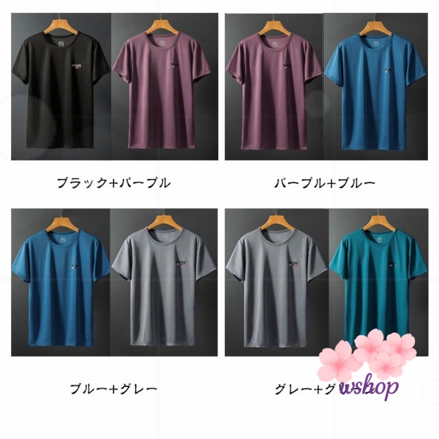 【wshop】ドライ tシャツ アウトドア 吸汗速乾 スポーツ ゴルフウェア 2枚セット! 速乾 夏服 カットソー 吸水 スポーツウェア メンズ シンプル 大きいサイズ インナー トップス 男女兼用 クルーネック レディース 接触冷感 トレーニング 半袖 ランニング