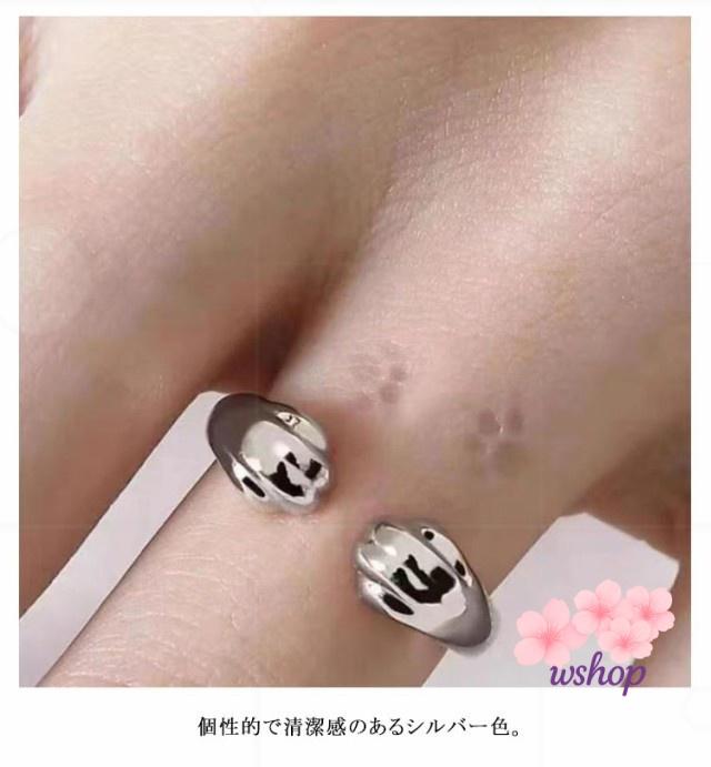 【wshop】サイズ調整 韓国 肉球 レディース 猫好き おしゃれ ネコ 送料無料 肉球 猫の手 猫モチーフ 猫アクセサリー ねこ かわいい 大人 フリーサイズ リング 銀 新作 猫グッズ シルバー 指輪 誕生日 リング プレゼント 犬 猫 ギフト 指輪 重ね付け リング