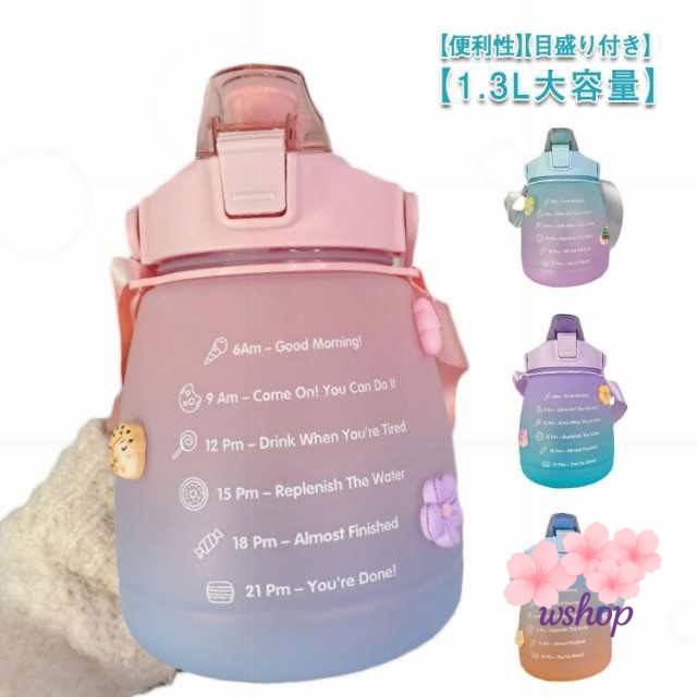 ウォーターボトル 水筒 ボトル 大容量 1300ml ストロー 直飲み タイムマーカー かわいい スポーツボトル クリア ボトル 運動水筒 スポーツ用 ストラップ付き 首掛け 携帯便利 男の子 女の子 おしゃれ 通勤 学校 アウトドア ヨガ トレーニング