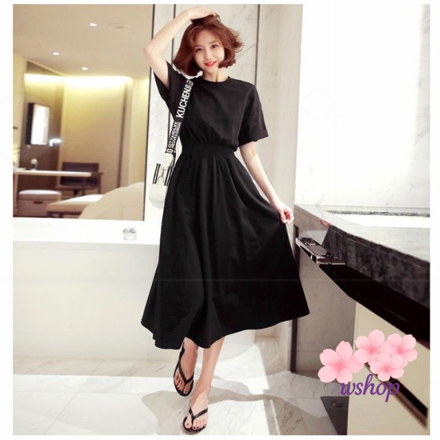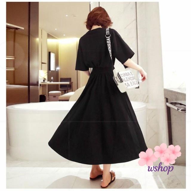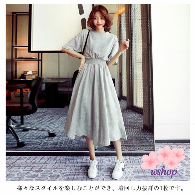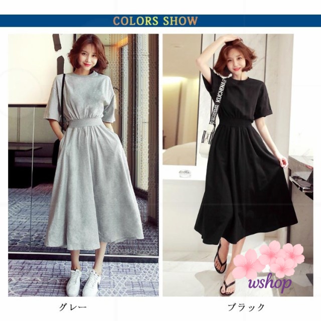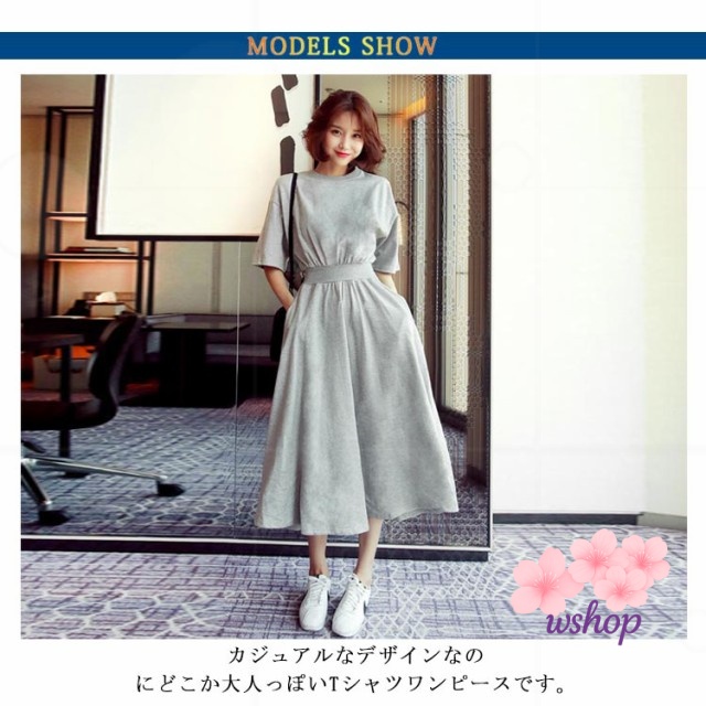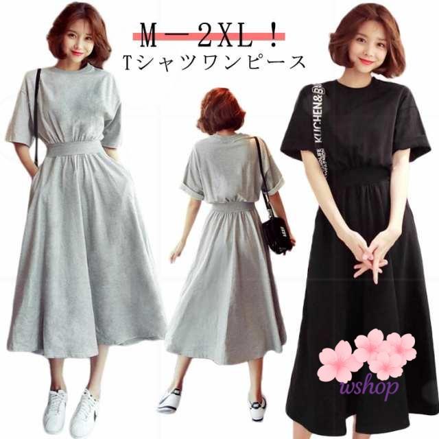 【wshop】ゆったり 大きいサイズ 半袖 着痩せ クルーネック ワンピース ロングワンピース 綿 春 マキシワンピース 夏 Tシャツ リゾートワンピース きれいめ レディース 体型カバー 韓国ファッション ドレス ワンピース ロング オシャレ 送料無料 パーティー