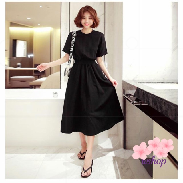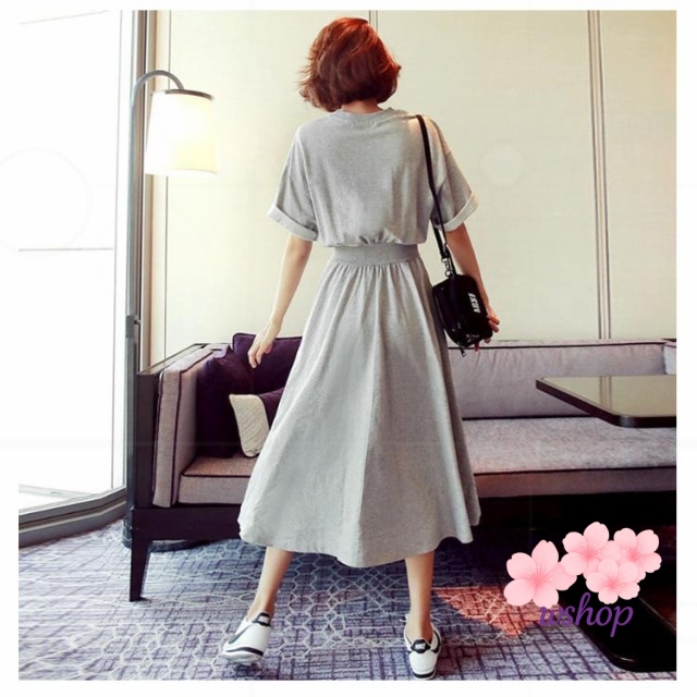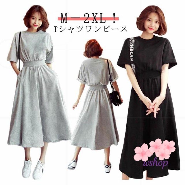 | M?2XL!カジュアルなデザインなのにどこか大人っぽいTシャツワンピースです。 様々なスタイルを楽しむことができ、着回し力抜群の1枚です。 ウエストゴムの位置が少し高めなので脚長効果も絶大です! | |