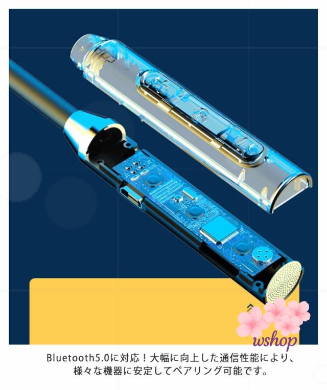 | 軽量でBluetooth5.0対応!ネックバンドタイプ Bluetoothイヤホン マイク搭載でハンズフリー通話にも対応しています。 microSD再生にも対応しているので、音楽プレイヤーとしても使用可能です。 イヤホンにマグネットが付いているので、ネックレスのように首に掛けることができます。 落下防止に最適です。 | |