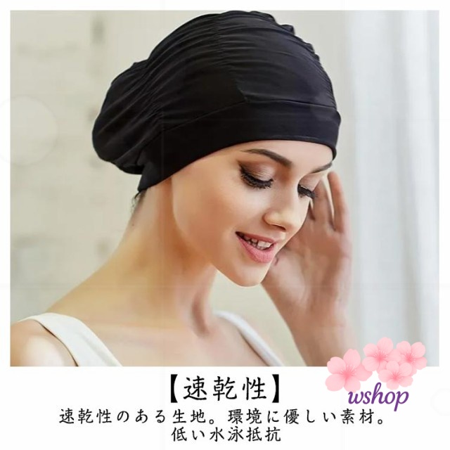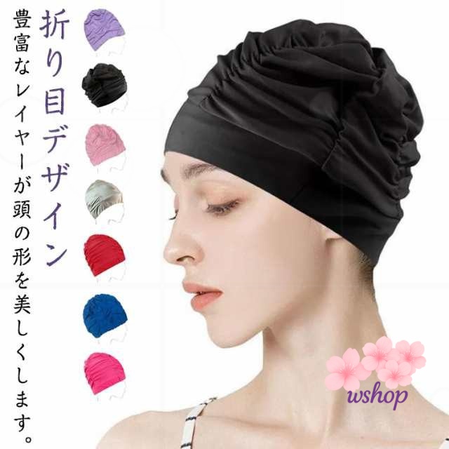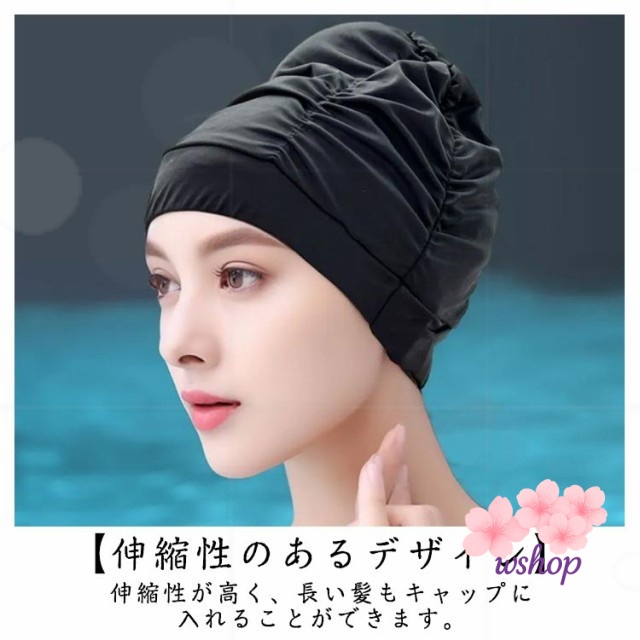 | 【折り目デザイン】豊富なレイヤーが頭の形を美しくします。 【伸縮性のあるデザイン】伸??縮性が高く、長い髪もキャップに入れることができます。 【速乾性】速乾性のある生地。環境に優しい素材。低い水泳抵抗 | |
