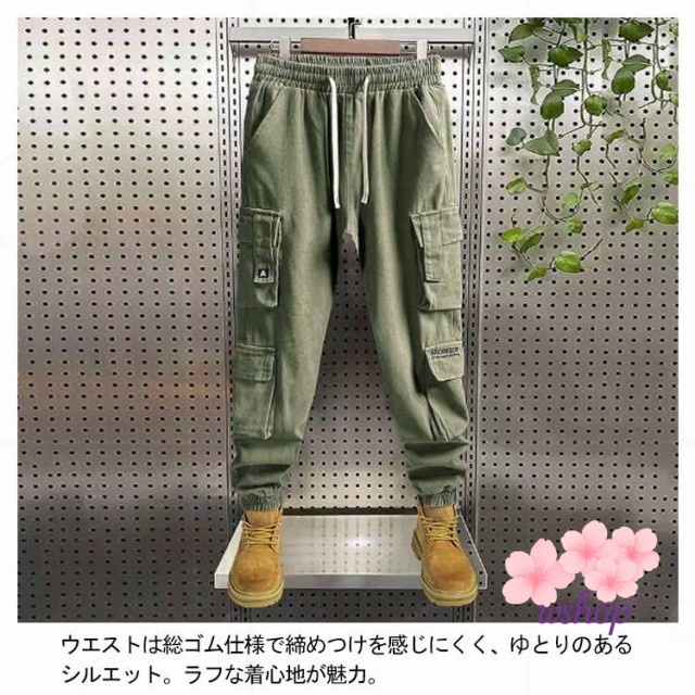 | どんなトップスにも合わせやすく着回し次第でオールシーズン活躍するカーゴパンツ 肌触りが柔らかく着心地抜群。 落ち着いたカラーなのでTシャツやトレーナー、パーカーなど、色々合わせやすいので春・夏に活躍 ウエストは総ゴム仕様で締めつけを感じにくく、ゆとりのあるシルエット。ラフな着心地が魅力。 ミリタリーシーンにもストリートシーンでもファッション性が高くコーディネートが可能。 | |
