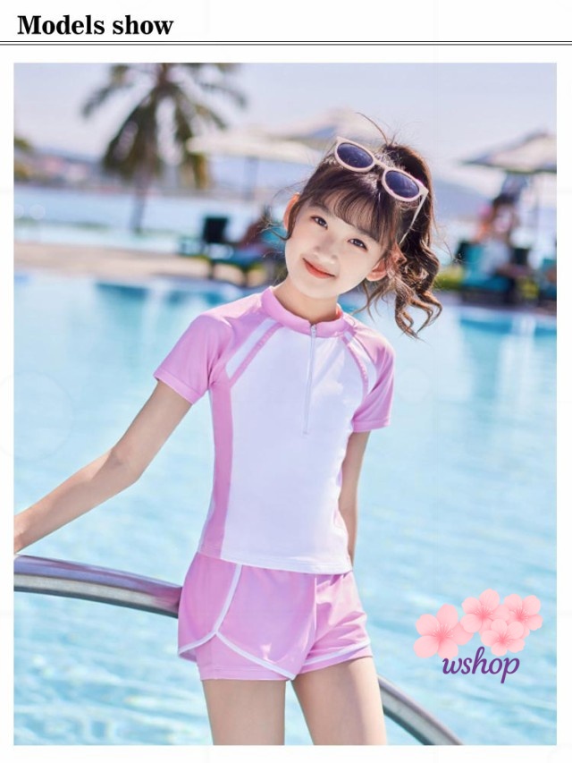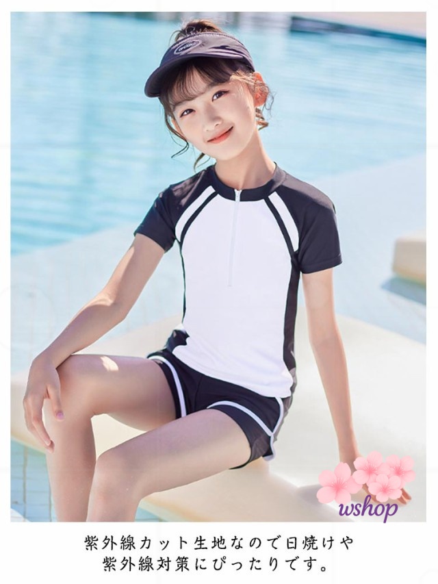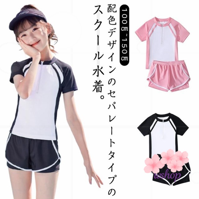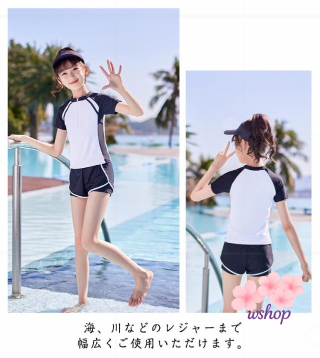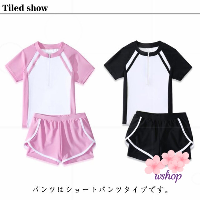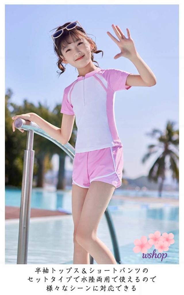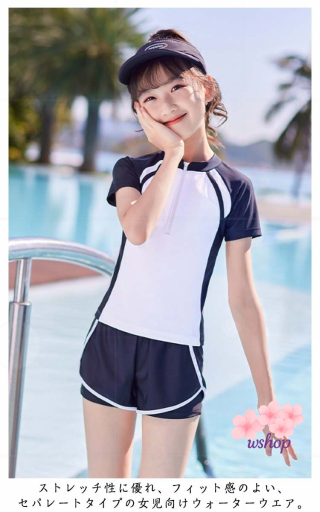 【wshop】水泳 140cm スイムウェア 2点セット 150cm UVカット 小学校 110cm キッズ セパレート ジュニア かわいい 高校生 パッド付 スイミング 女子 女の子 トップス 120cm 100cm 女児 水着 中学生 ショートパンツ スクール水着 半袖 キッズ水着 130cm 子供 ジュニア
