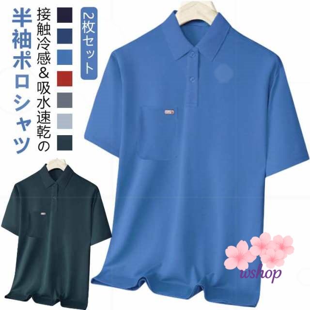 【wshop】作業着 ポロシャツ カジュアル アウトドア ゴルフシャツ 夏 抗菌 トップス 接触冷感 防臭 スポーツ 無地 吸水速乾 2枚セット ゴルフウェア 作業服 2枚セット シンプル クール 送料無料 春 春夏 涼しい 冷感 大きいサイズ 春服 メンズ おしゃれ ポロシャツ 半袖 UVカ