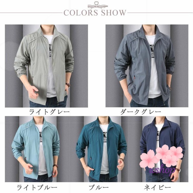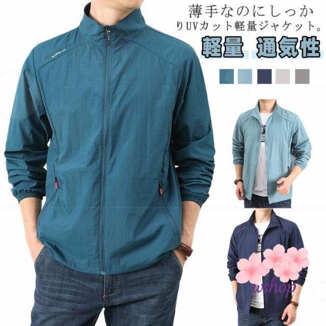 【wshop】ひんやり 涼しい 長袖 UVカット ジャンパー 夏用 ジャケット 日焼け防止 スポーツ用 吸汗 通気性 立ち襟 カジュアル アウトドア コート 薄手 軽量 夏用 冷房対策 メンズ ブルゾン 紫外線対策 フードなし 速乾 無地 大きいサイズ